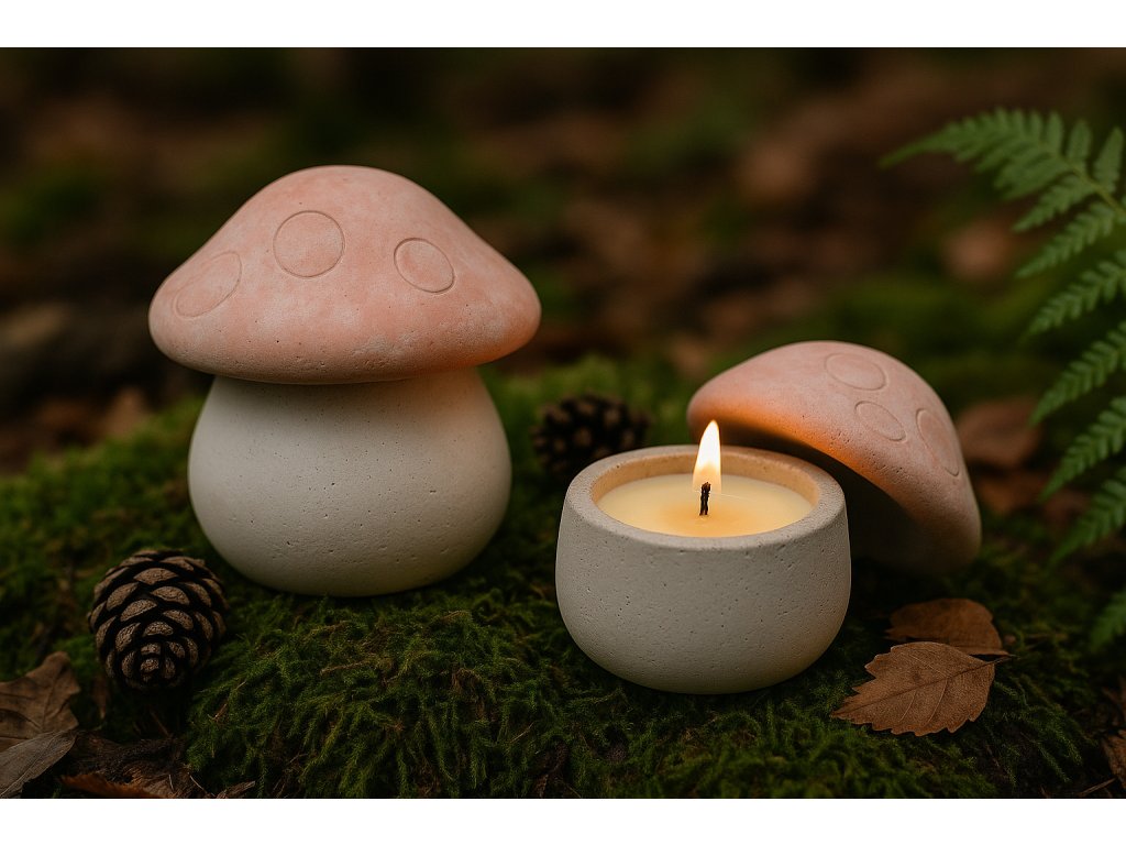 Originální svíčka ve tvaru houbičky, ručně odlitá do betonového kalíšku. Spojuje přírodní design s útulnou atmosférou podzimních večerů.